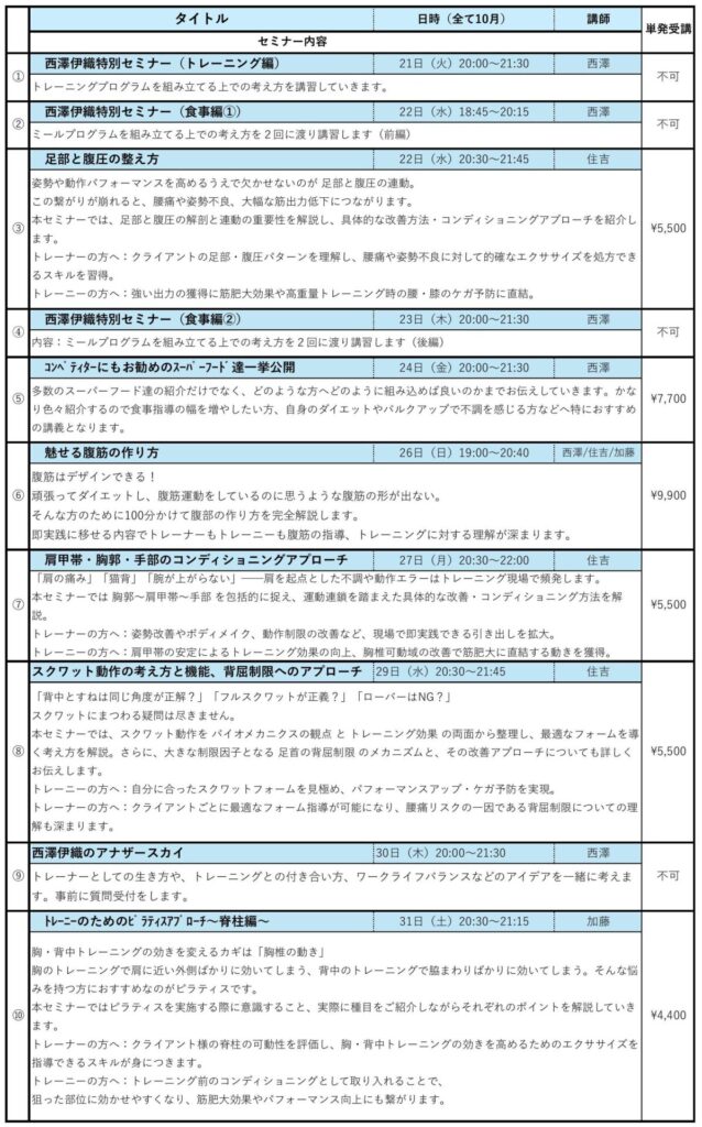 トレーナー様はクライアント様への指導に、トレーニーはご自身の体作りに活かせるレベルUPセミナーをオンラインにて開催いたします。